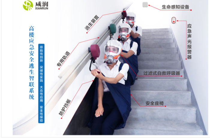 “高樓應(yīng)急安全逃生智聯(lián)系統(tǒng)”項(xiàng)目,可有效解決高層建筑及各類(lèi)人員密集場(chǎng)所內(nèi)涉險(xiǎn)人員的群體性緊急疏散難題, 在傳統(tǒng)“防、消、救”的層面上,增加了“逃”的功能。當(dāng)發(fā)生火災(zāi)等緊急情況時(shí),第一時(shí)間實(shí)現(xiàn)聯(lián)動(dòng)報(bào)警,百米高層3分鐘快速逃生,高效有序撤離至地面安全地帶。同時(shí)結(jié)合物聯(lián)網(wǎng)+功能,對(duì)樓內(nèi)人員進(jìn)行生命探測(cè)、位置追蹤,為消防隊(duì)員提供精準(zhǔn)救援信息,將主動(dòng)自救互救和協(xié)同組織救援緊密結(jié)合,有效提高救援全過(guò)程質(zhì)效,降低人員密集場(chǎng)所群死群傷重特大火災(zāi)事故的發(fā)生幾率,扭轉(zhuǎn)重特大事故多發(fā)被動(dòng)局面,減少人員傷亡及財(cái)產(chǎn)損失,全方面保障人民生命財(cái)產(chǎn)安全,填補(bǔ)人員密集場(chǎng)所緊急疏散基礎(chǔ)設(shè)施建設(shè)空白。